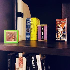 7. Reshuffling of tarot cards in an attempt to make sense of her place in the universe